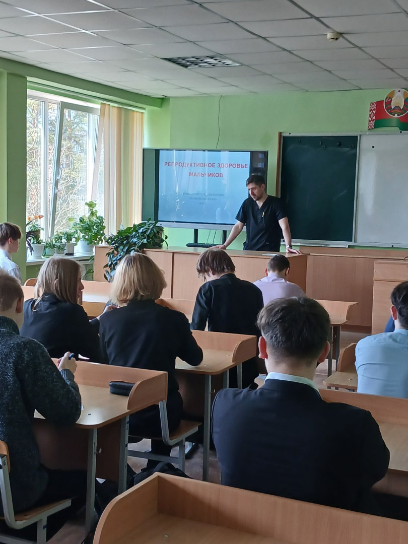 13.03.2026г. ГУО "Вилейская гимназия №2". Профилактическая беседа. Тема:. "Репродуктивное здоровье юношей: вопросы анатомии, физиологии, гигиены, контрацепции. вопросы половой неприкосновенности.". Врач уролог Омельянюк С.Ю.
