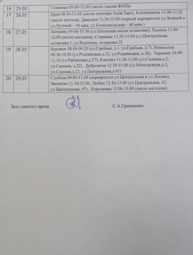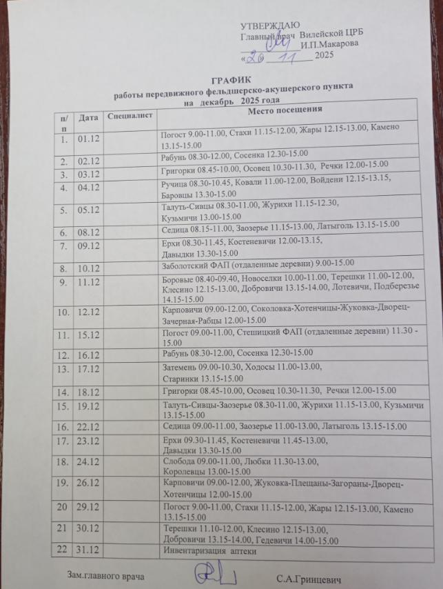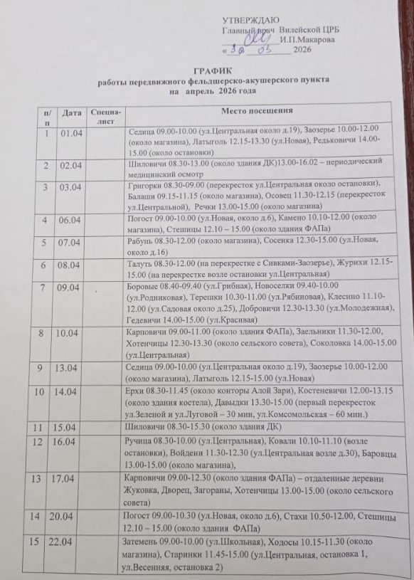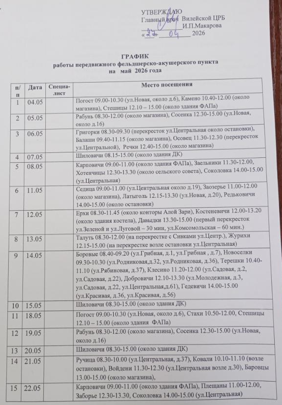 График передвижного фельдшерско-акушерского пункта