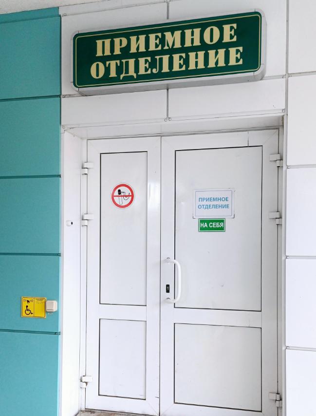 Входы в приемное отделение имеют кнопку вызова персонала для получения помощи, дублирующуюся тактильной табличкой со шрифтом Брайля для инвалидов по зрению.