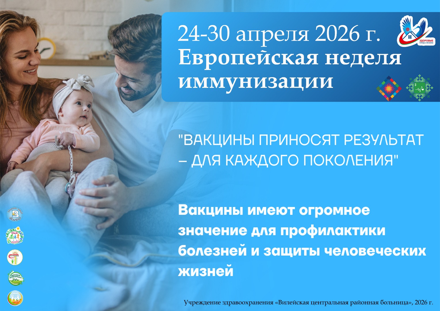 Каждый год в Европейском регионе ВОЗ проводится Европейская неделя иммунизации (ЕНИ), в целях популяризации идеи о том, что вакцины имеют огромное значение для профилактики болезней и защиты человеческих жизней. В этом году юбилейная, 20-я ЕНИ будет проходить под лозунгом "Вакцины приносят результат – для каждого поколения".