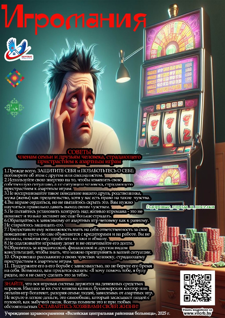 В учреждении здравоохранения «Вилейская центральная районная больница» организовано оказание психиатрической, наркологической, психотерапевтической, психологической помощи людям, страдающим игровой зависимостью, а также семьям, в которых один из членов семьи страдает патологическим влечением к азартным играм.