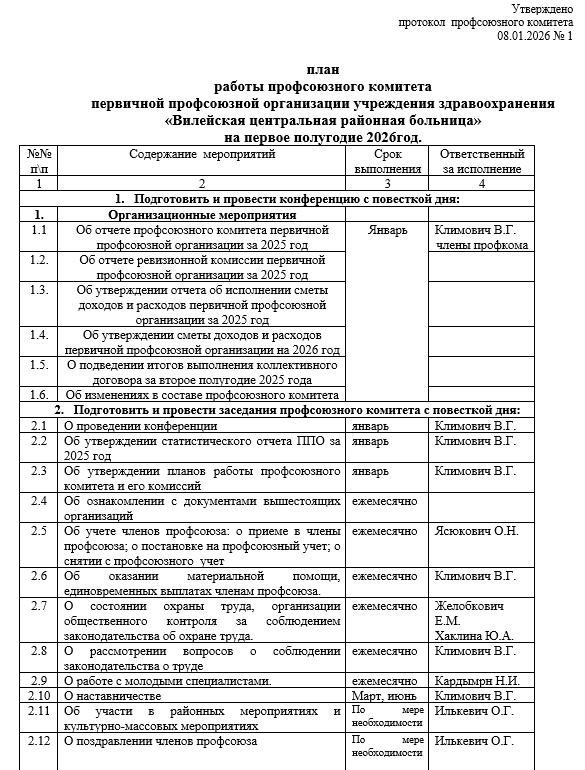 Формы заявлений на вступление в профсоюз, оказание материальной помощи находятся у председателя первичной профсоюзной организации Климович В.Г. в кабинете № 604 хирургического корпуса Вилейской центральной районной больницы. Время приема граждан: понедельник, среда, пятница с 15.00 до 16.00.